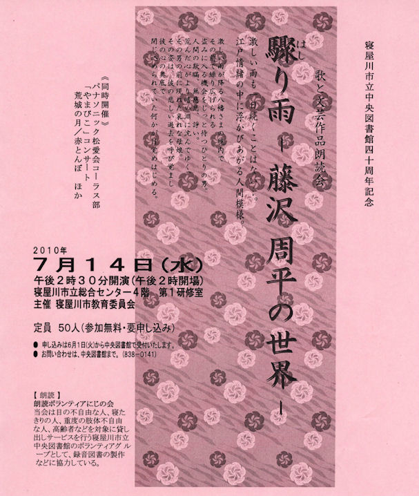 2010年7月18日、寝屋川市立中央図書館40周年記念に出場しました。