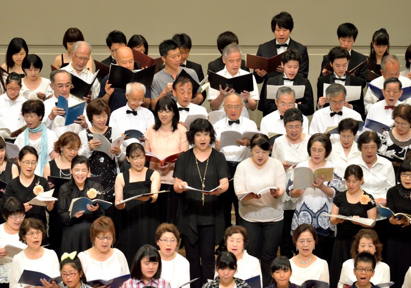 また出演者全員による全体合唱では「きみに会えて」を松愛会コーラス部の指揮者西山秀美さんの指揮で歌い、当日のフィナーレを飾りました。 |