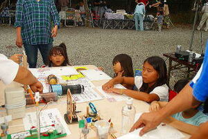 組み立て作業開始、指導員が手取り、足取り?指導中。
