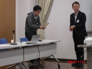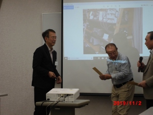 また、席上2019年度のマラソンコンテスト結果発表と表彰式がありました。その様子は、以下の満田理事からの