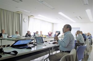 | 新兵器・アンテナ測定器の紹介中 | 役員会議風景 |