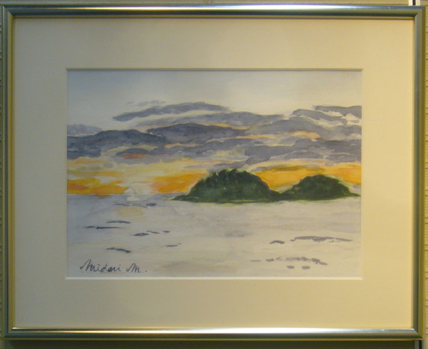 - 真鍋美どり<夕日の沈むみなべの海>水彩4号