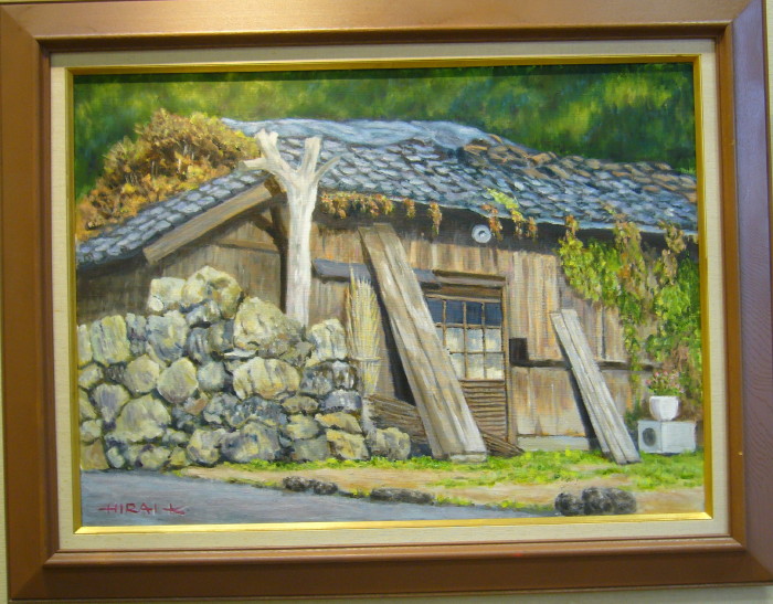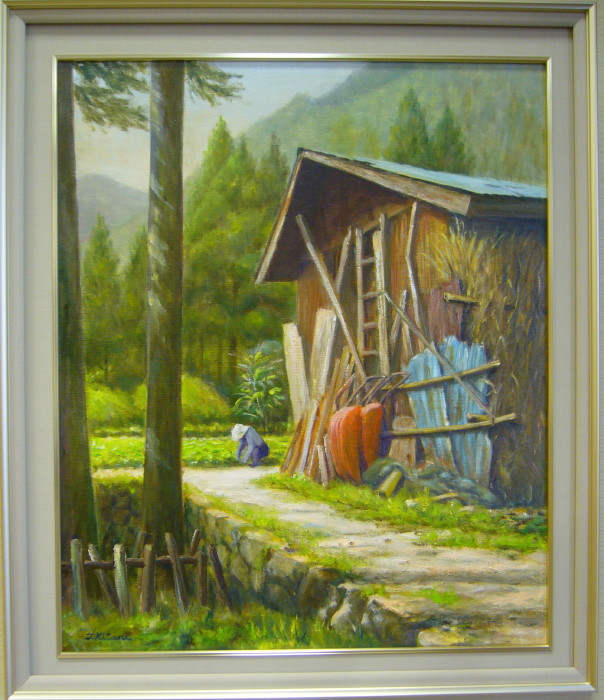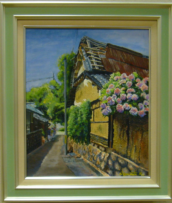 - 西本和幸<廃屋の庭に咲く紫陽花(山の辺の道にて)>油彩8号