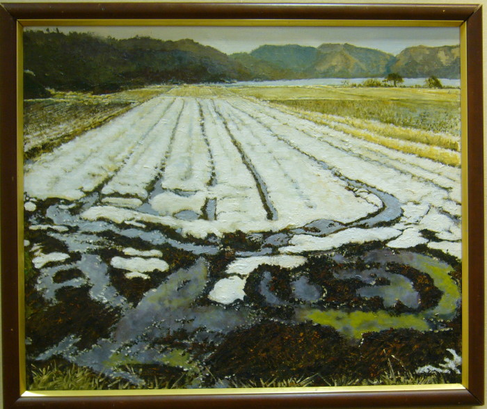 - 磯野二郎<雪解け(余呉湖)>油彩20号