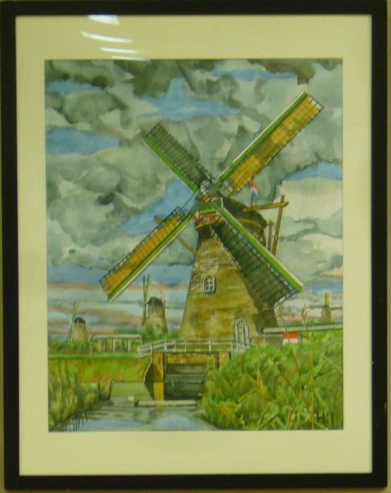 - 和泉英夫<キンデルダイク風車群>水彩20号