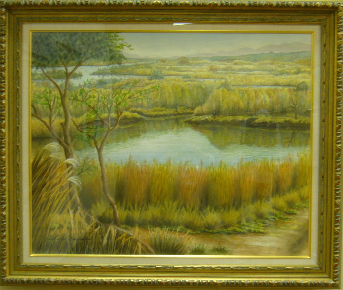 - 窪田均<淀川ワンド(遺作)>水彩30号