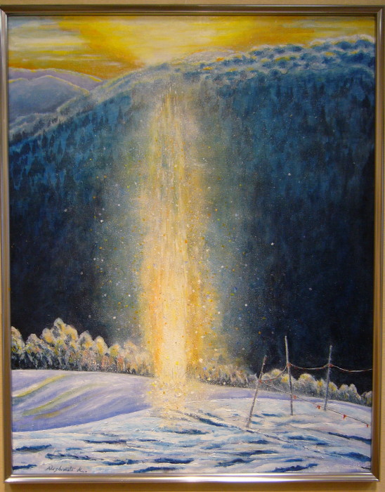 - 西本和幸<極寒の煌き(太陽柱)>油彩30号