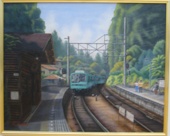 - 飯田宏冶<山里の小さな駅>油彩30号