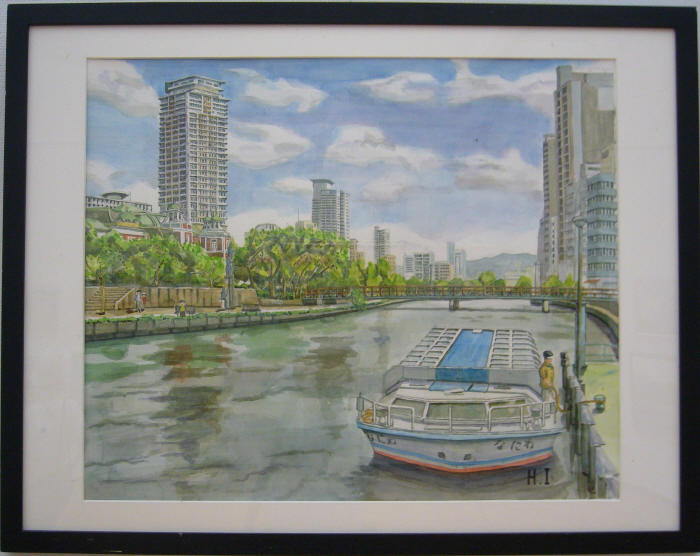 - 窪田均<安治川の船溜り>水彩20号