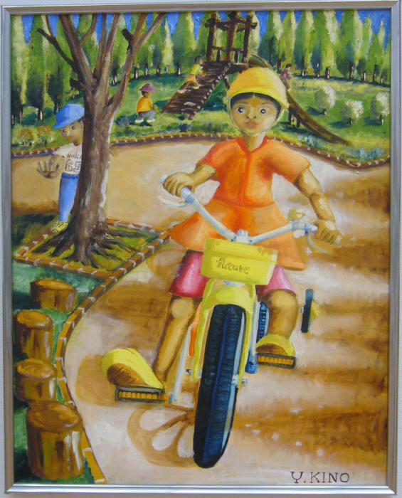 - 木野由夫<お姉ちゃん僕も乗りたい>油彩30号