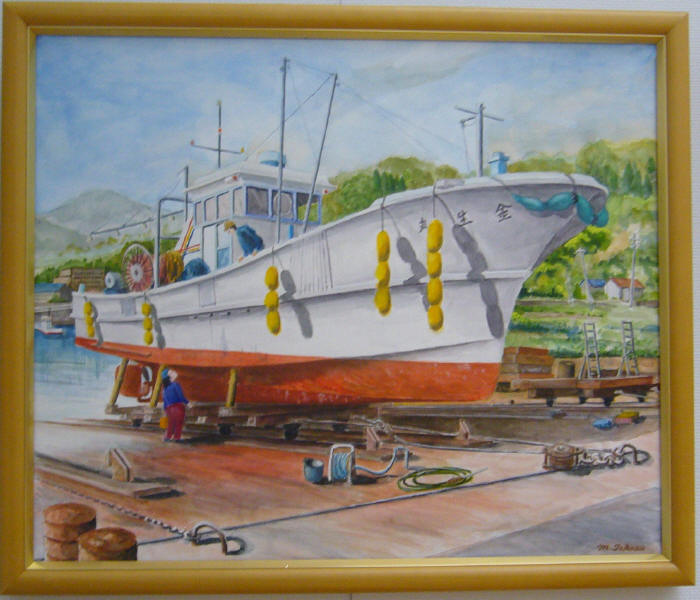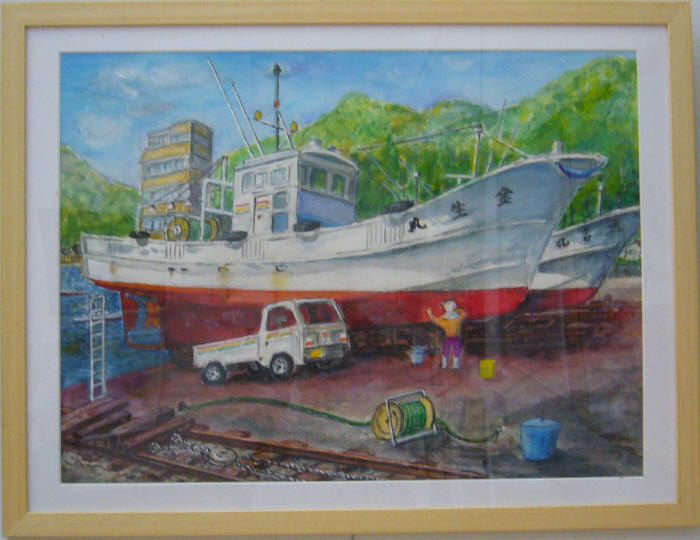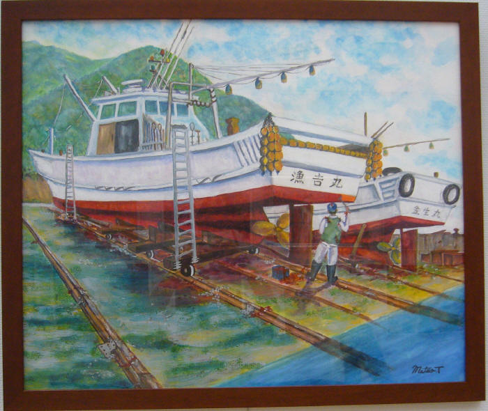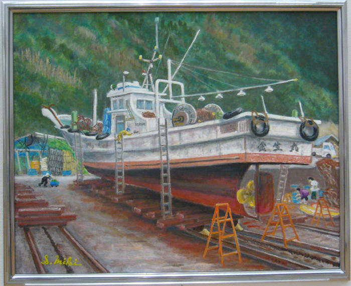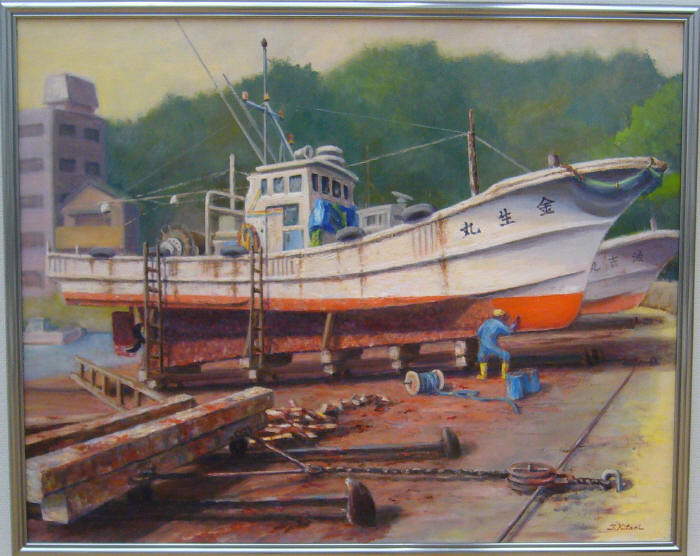 - 三木茂<漁船修理>油彩30号