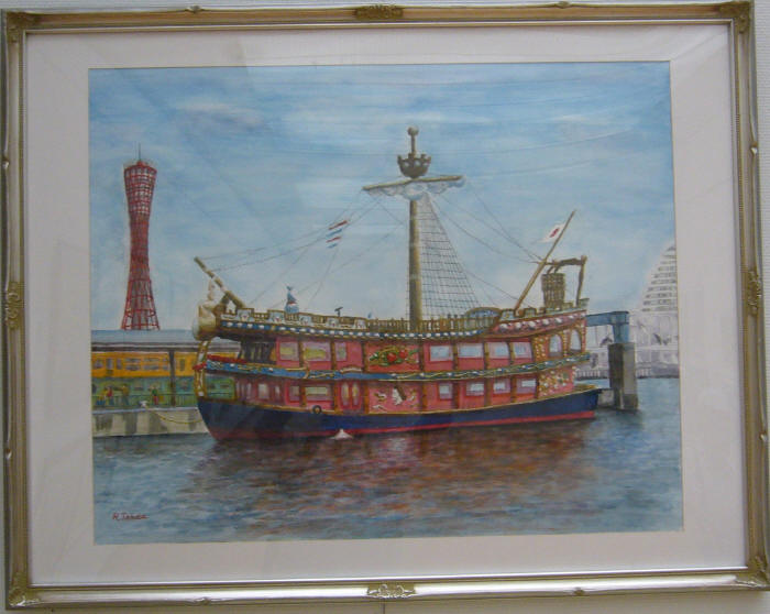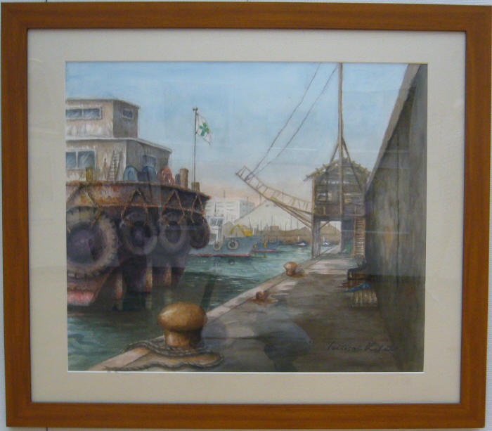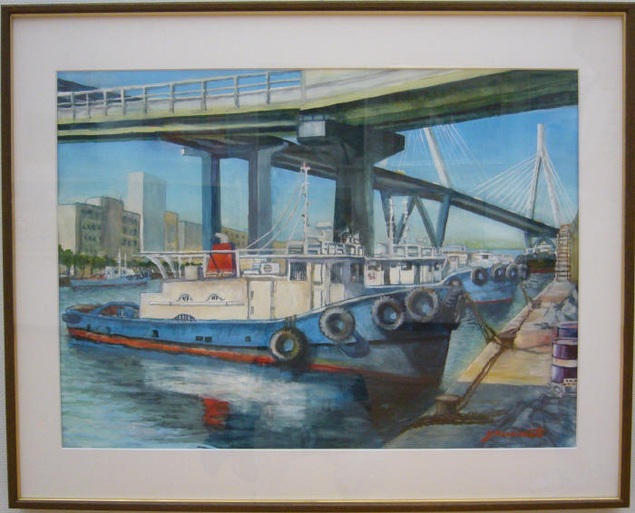 - 楠本芳久<船だまり(大阪港)>水彩20号