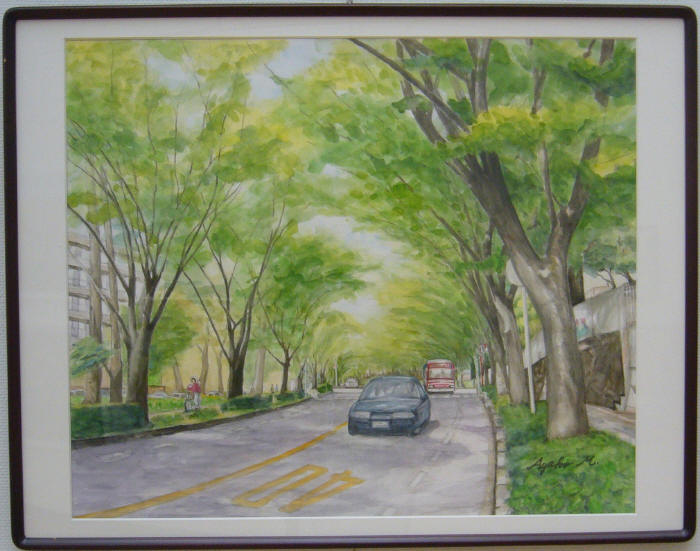 - 森垣綾子<新緑のけやき通り>水彩20号