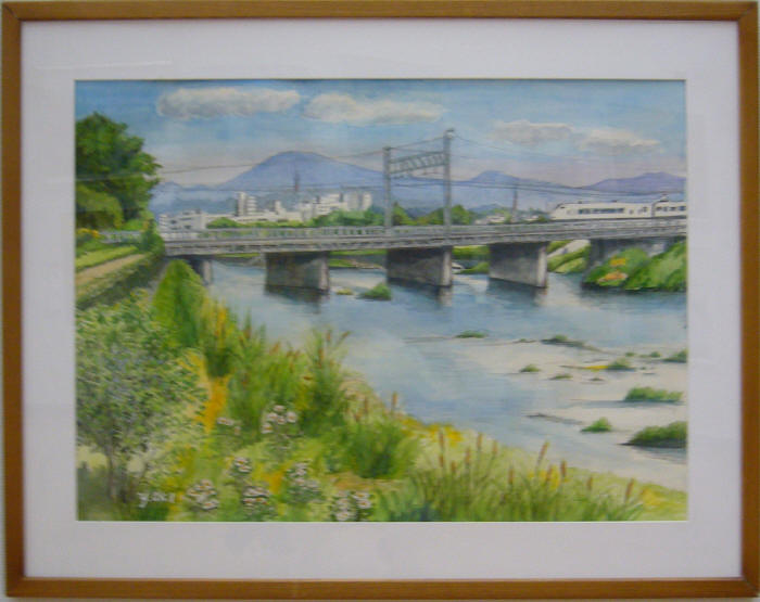 - 隠岐洋之助<芥川鉄橋と生駒山>水彩20号