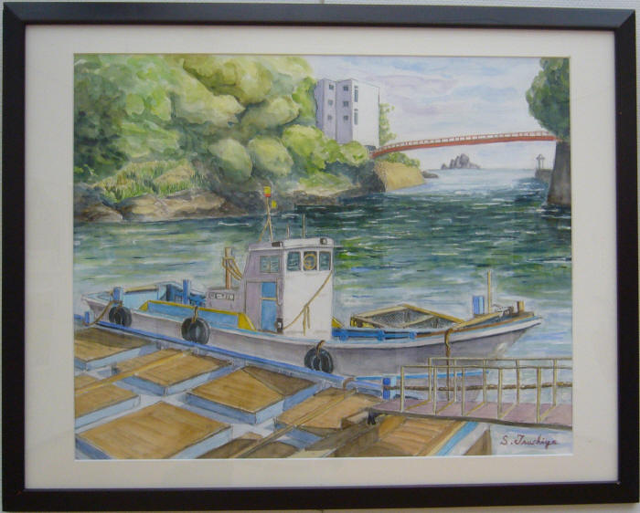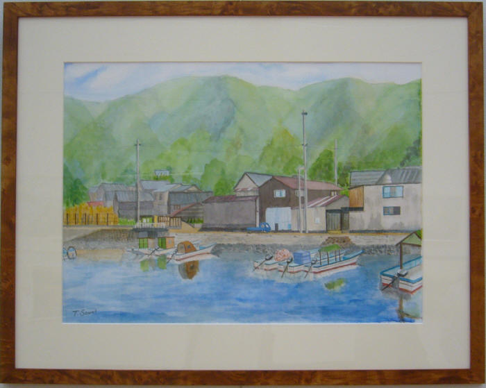 - 土屋祥二<朝の港風景(答志島)>水彩20号