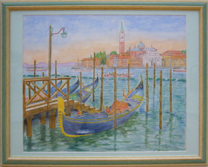 - 月森登美雄<ゴンドラのある風景>水彩20号