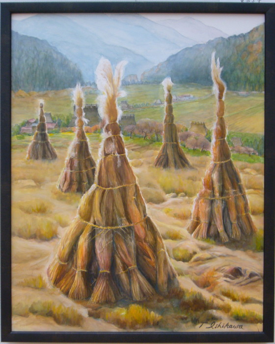 - 石川敏郎<晩秋の美山郷>水彩30号
