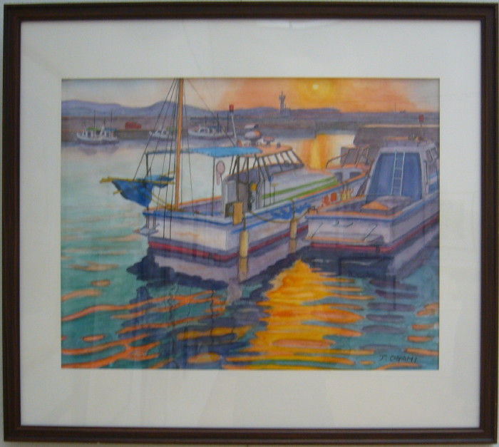 - 大上徹也<夕凪の雑賀崎港>水彩10号