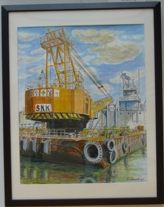 - 土屋祥二<クレーン船>水彩20号