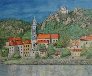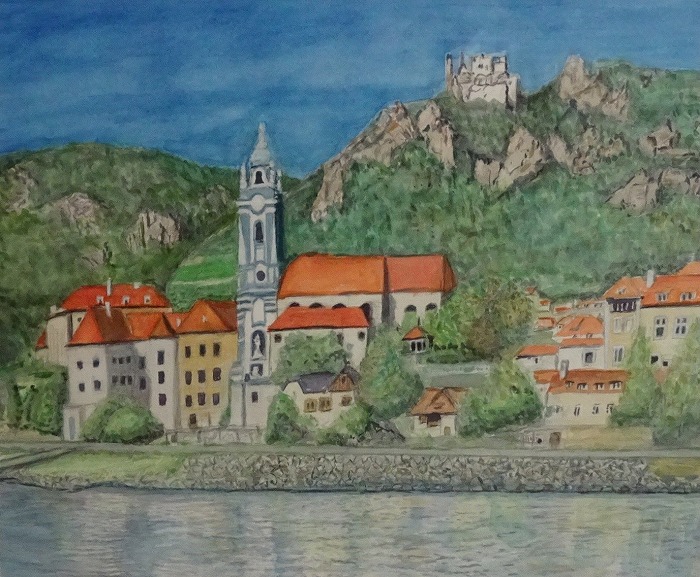 - 田中眞純<デルシュタイン城跡と教会>水彩8号