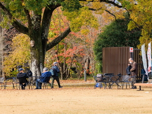 幹事さんによると紅葉はまだ1週間くらい早めかな、ということでしたが、もみじだけではなくけやきや大きな「フウ」の木などもきれいに紅葉していました。このあとは自由解散となり、さらに園内をまわったり一部はその後京都の町を散策されたりされたりしたようです。参加された皆さん、幹事さんお疲れさまでした。