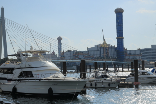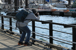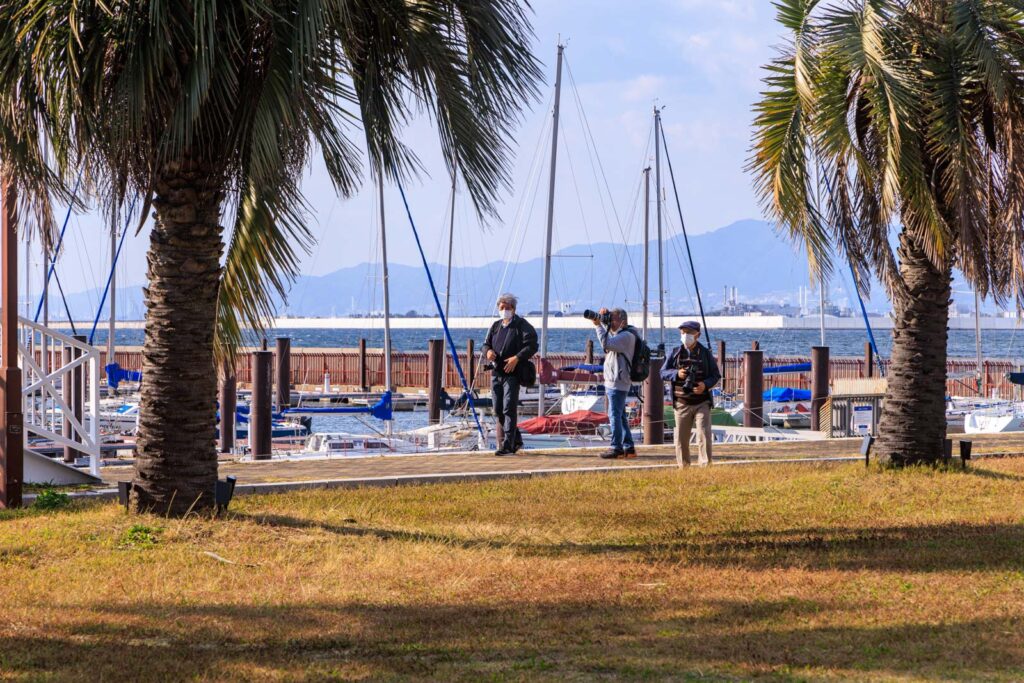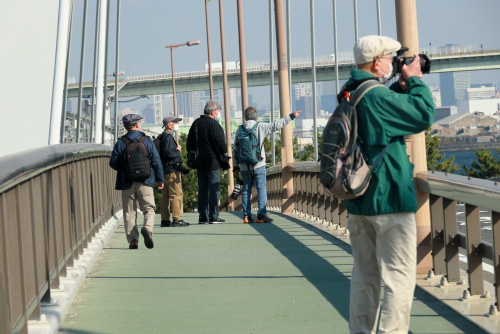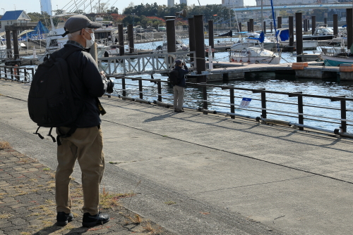 ここから、すぐ近くの常吉大橋を渡って北港マリーナまで行きましたが、あいにくここのヨットハーバーは定休日のようで、桟橋に係留されているたくさんのヨットを眺められただけでした。ここで撮影会を終了として一緒にバスで西九条駅まで行って解散となりました。