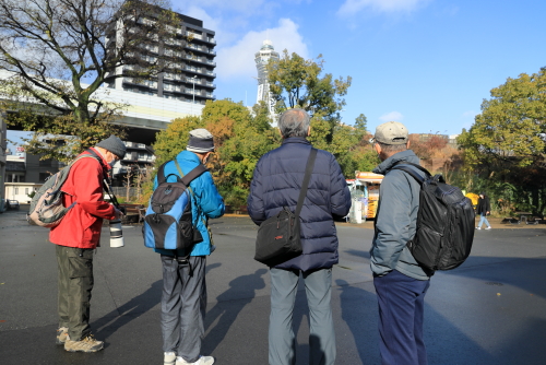 ちょうど昼過ぎに「てんしばゲート」を出たところにあるイタリア料理レストランで昼食をとり、その後天王寺公園を通って新世界方面に向かいましたが、途中、大阪冬・夏の陣で戦場となった茶臼山に寄ってきました。レポーターは大阪で生まれ育ちましたが恥ずかしながら茶臼山は初めての訪問でした。池にかかる和気橋を渡って茶臼山頂上まですぐですが、真田幸村の戦いなどを解説した看板が何枚も立っていました。そこから再び新世界ゲートの横を通って新世界をぶらぶら散策して帰りました。最後は自然解散となりましたが、あわただしい年の暮れにほっと一息の息抜きになりましたね。幹事さんご苦労様でした。参加者の皆さんお疲れさまでした。