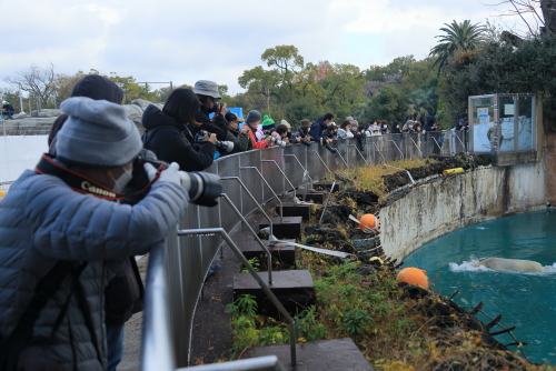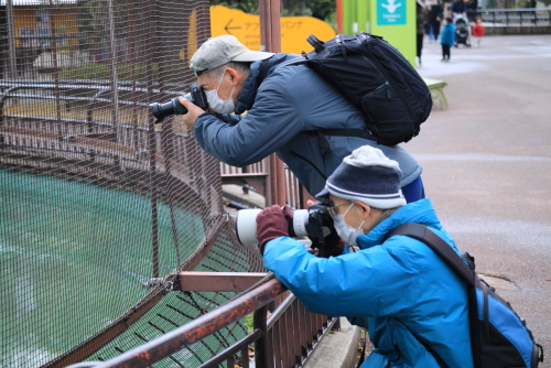 今年最後となった撮影会は年の瀬も押し詰まった12月22日(木)天王寺動物園です。大阪に住みながらここはずいぶん久しぶりの訪問ですね。午前10時に新世界ゲート前に集合。参加者は5名です。入門したところでいつも通り記念撮影した後は順に巡りながら反対側のてんしばゲートに向かいます。園内はところどころ工事中で大きなスペースが囲いに囲まれていたりしていますが、前夜からの雨も上がり、しかも寒さも一段落したためか比較的過ごしやすくて助かりました。年末の平日であり雨上がりということもあったためか園内は割とゆっくりと見学出来ましたが、外国からの観光客もずいぶん増えたようで中国語などが飛び交っていました。ホッキョクグマのところは相変わらずの人気でたくさんの見学者が集まっていましたが、「鳥の楽園」や「アフリカ・サバンナ」ゾーンもそれなりの人気があったようです。