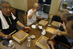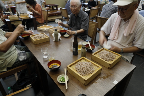 旧堺灯台で撮影が終わってから、当初最後に訪問する予定だった宿院にある、堺の生んだ二人の偉人、千利休と与謝野晶子を展示してあるミュージアム「さかい利晶の杜」へ歩いて向かいます。宿院に着いた頃ちょうど昼食の時間になったので、これまたすぐ近くにある評判のそば処「ちく満」へ。ここは昨年新しく建て替えられてきれいになってますが創業が元禄八年という「せいろ蕎麦」を出す店です。これは蒸した「熱盛蕎麦」で一種独特の食感でハマる人はハマるようですね。(^^;) 食事の後はすぐ近くの「利晶の杜」を見学して解散となりました。