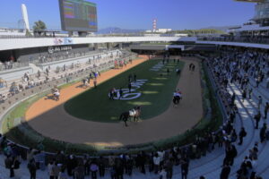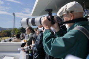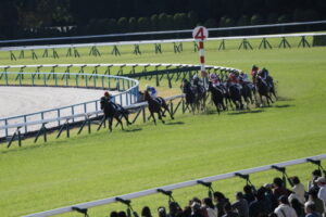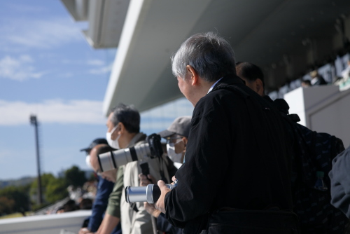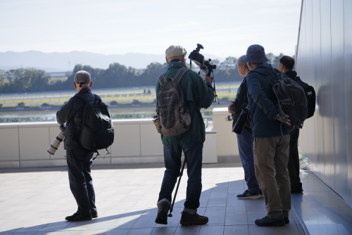 11月度の撮影会は恐らく当写真部の撮影会としては初めてだと思いますが京都競馬場です。天候があまりよくないという予報だったにもかかわらず快晴で暑いくらいの良い天気になった11月9日土曜日、京阪淀駅中央改札口10時半に集合。競馬が開催される日は競馬場に直結する臨時改札口が開くのですが、集合が反対側の中央改札口だったため1名がタイミングが合わず記念の集合写真に間に合わなかったというハプニングがありましたが、参加者はゲスト1名計7名です