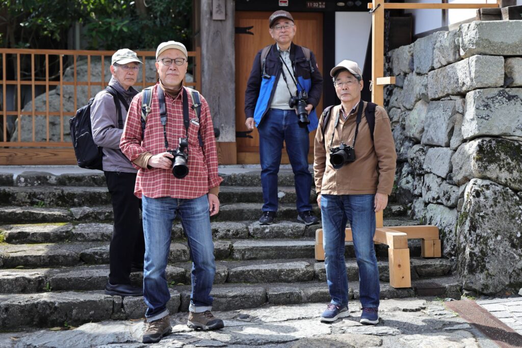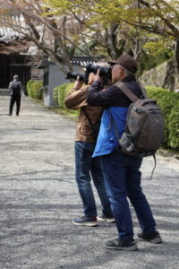比叡山延暦寺の門前町・坂本は古い石垣が残る風情のある景観と桜のコントラストが美しい街並みで、日吉大社、滋賀院門跡・西教寺・旧竹林院などの名称が多くあります。今年は天候が不順で寒くなったり暖かくなったりで何時開花するのか何時満開時期になるのか心配でしたが、撮影会の日は、天気も良く桜は満開で絶好の撮影会日和でした。