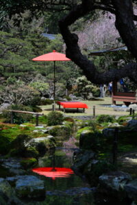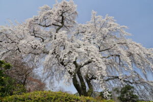 10時に坂本比叡山口に集合。参加者は5名。今回の目的は、日吉大社参道の桜、旧竹林院から西教寺の桜と名物の蕎麦を食べる事。日吉大社の続く参道、日吉馬場の両脇には200本の桜が満開、さっそくカメラを取り出し写活開始です。参道を登ったすぐ右脇にある薬樹院の枝垂れ桜が満開でした。秀吉の侍医だった全宗が住んでいたことから『薬樹院の太閤桜』と呼ばれ圧巻の枝垂れ桜です。庭園は非公開なので壁外からの撮影しか出来ません。次に旧竹林院へ、竹林院は延暦寺の里坊で僧侶が隠居して住む場所だそうです。回遊式庭園と桜、茶室にはテーブルに写るリフレクションが用意されてました。