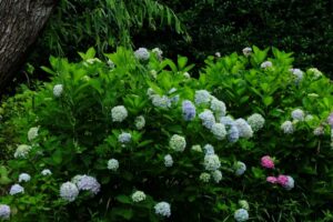 ガクアジサイと柳