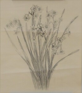 「スイセンをスケッチし(下記に貼付)本画として描きました」