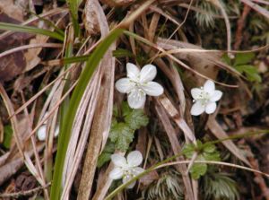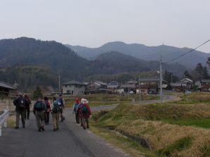 | 松愛会山歩き会で飯道山に行った。午後雨になりそうな感じのスタートだった。 貴生川駅から歩き始める。春が一挙に来ている感じで名も知らない草花がたくさん咲いている。貴生川小学校を過ぎゆったりとした田園風景の中を歩く。日吉神社を過ぎたあたりにショウジョウバカマがきれいに咲いていた。つくし、ふきのとうなども心和む。手前の山を越えると程なく本峰のある不動茶屋に着く。頂上手前の杖の権現茶屋も実際は何もなく、お茶など出てくるわけもない。昔は参拝者のための茶屋だったのだろう。お不動さんにお参りして先に進む。本格的な登りになりガラガラ道の佐羅坂(ざらざか)を過ぎると杖の権現茶屋になる。小休止をして頂上に向かう。最後の急なのぼりだ。山頂に到着。 山頂からは近江富士(三上山)と甲西富士(菩提寺山)が重なって墨絵のように見える。あいにくの曇りであまり遠くまでは見えない。近江富士の向こうに比良連峰が見えるはずだ。飯道山の三角点は、二等三角点で標高664mだ。ここの三角点で気になったのは表示面が北向きになっている。一般に表示面は南向きにになっている。なぜなのだろうか疑問がのこる三角点だ。午後は飯道神社、紫香楽宮跡、信楽焼きなど見ながら紫香楽宮跡駅に向かう。信楽鉄道は1時間に1本しかないため待ち時間が大変だ。我々の帰路では2時間弱の待ち時間になってしまう。半分ゆったりした気持ちと半分いらいらした気持ちを繰り返して電車を待った。待ちに待った電車に乗り貴生川駅へ。貴生川駅から送迎バスで塩野温泉に行く。 温泉につかりゆったりする。手の込んだお料理も頂き今日はハッピーな一日になった。 |