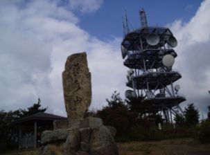 ![]() 急な階段の登りを越えると山頂のアンテナが見える |