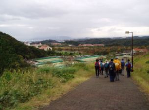 | 松愛会山歩き会。年3回の低山温泉つき山歩き会だ。今回は菊水山に行った。 新開地までは順調な滑り出しだったが、神戸電鉄に乗ろうとしたらハプニング。ほとんどの電車が菊水山駅には停車しないのだ。駅員に聞いたら9時51分に乗ってくださいと言う。案内の掲示板を見ると菊水山は止まりませんとある。駅員3人がかりで時刻表を調べるとやはり止まらない。とにかくこの電車で鈴蘭台まで行って30分ほど後の電車で戻れば少しは早くつくこと判明。駅員に運賃の追加を徴収しないと約束。結局10分足らずで行けるところが40分ほどかかった。まともに新開地から次の電車に乗ると更に40分ほど後になる。お客様意識に欠ける神鉄のダイヤだ。ほぼ10分間隔で運行しているのに、菊水山駅に行くには乗り遅れると約1時間20分ほどの待ち時間になる。 まあそんなことがあって、やっと菊水山駅に到着。駅から谷に下り途中から細い道を上流に行くと橋があり登山口になる。 登山道は六甲全山縦走路になっている。いきなり階段状の急な道を登る。一息登ると菊水山山頂のアンテナが見える。ここに休憩所もあるのでしばらく休憩。標識にはここから山頂まで900mとある。また階段や階段状の道を上がる。山頂までほぼ階段と思ってもいい。道はよく整備されている。 振り返ると海と山がマッチしてきれいだ。右下にはゴルフ場が開けている。山頂は広く展望が良い。 東から南方向には、六甲連山、大阪湾そして神戸の街、海が一望できる。西に目をやれば明石海峡大橋から淡路島が見える。北側には電波塔が立っている。標高458.8mで三等三角点になっている。山頂でゆっくり昼食をしたあと鈴蘭台側に下る。こちらの道は市民の登山コースになっていてよく整備されていて、傾斜もきつくない。森林浴コースを降りることにした。下りに弱いと定評があるあの人も難なく下山したようだ。神鉄車庫あたりに下山して、広い自動車道に沿ってしあわせの村に足を運ぶ。途中鈴蘭公園で休憩した。この公園はあの阪神淡路大震災のあと仮設住宅があった場所で記念植樹もしてあった。半時間ほど頑張って歩くとしあわせの村についた。どこかの国を想像させるような建物や景色になっている。 ドーム状のジャングル温泉につかり、ゆったりと幸せな気分を味わった。 帰路はバスで神戸駅を経て大阪に戻った。二次会はニューミューヘンでビールを楽しんだ。 |