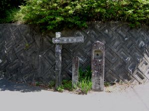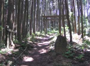 ![]() 道標「右やたき 左嶽大明神」と鳥居 |