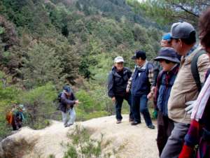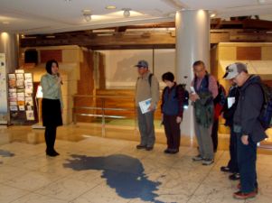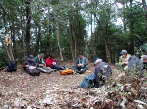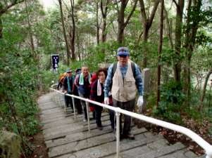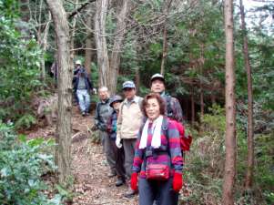 | 松愛会山歩き会主催で今年最初の立木山・袴腰山に行った。 JR石山駅に集合して京阪バスで立木観音前バス停で降りた。立木観音の参道の七百余段の石段を上がる。本日の最高齢は80歳だ。ペースを落として所々で休みながら上がる。錫杖を持ち歩く姿の弘法大師像から歩き始め本堂前の鹿に乗った弘法大師までかなりの急階段だ。本堂の厄除け観音にお参りして、柚子茶を頂いて清々しい気持ちになった。 奥の院横から立木山へと登った。尾根道を少し登ると巻道と山頂の分岐に着く。少しの急登を登りきると立木山山頂に到着する。標高は305.6mで三等三角点がある。ここで少し早い昼食にした。昼食後袴腰山へ足を進める。山頂から急な坂を下ると尾根道に出る。尾根道をしばらく歩くと分岐に出る。前回この分岐から旧参道を南郷まで下った。 本日のメンバーに袴腰山へ行くかの確認で全員行くとのことなのでそのコースを取る。分岐から急な下り道を谷筋まで下る。登り返して急斜面をさらに登ると展望台に着く。低い山にしてはかなりの急登で滑りやすい道だ。途中登山道をメンテしているボランティアに出会った。急斜面にロープを付け展望台の草刈をしてくれたそうだ。展望台にたどり着くとすばらしい展望だ。しばらく展望を楽しんでいると疲れがとれていったようだ。 しばらく行くと木々の間から袴腰山のピークが見えてきた。そして下った鞍部が分岐でこの上が山頂だ。最後の急登を登ると山頂に着く。山頂は雑木林で山頂の面影はない。変電所に下山開始した。しばらく下ると大津市の一級基準点・三級水準点があった。この基準点の下あたりに宇治発電所導水路が通っているのだろうか。湖南変電所までどんどん下る。 芋谷を経て南郷温泉二葉屋に到着。温泉でゆっくりくつろいだ。時間もたっぷりあるので国土交通省の水のめぐみ館・アクア琵琶の見学に出かけた。コンパニオンからアクア琵琶の説明を聞いた後館内を見学した。たまには良いものだ。 見学後バスで石山へ戻り京都で懇親会を行って解散した。天気もよく有意義に過ごせたと思う。 何はともあれ怪我もなく楽しく過ごせたのが一番だった。皆さん有難うございました。 |
