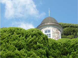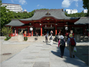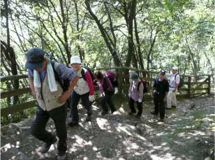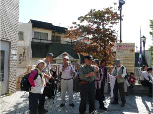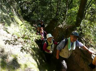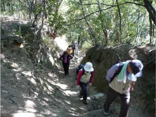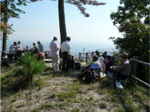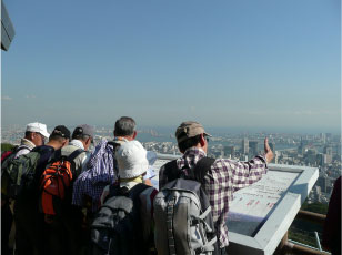| 松愛会山歩き会主催で神戸の裏山を歩いた。JR三宮を出発して生田神社に参拝。北野異人館街を散策して新神戸駅に向かう。風見鶏の館、うろこの家など見て廻り、展望台に行こうかと思ったが震災後、道がなくなったとかで行けなかった。ウオーキングではゆっくり見たことがなかったが、今回は少しだけこの辺りの様子を垣間見ることが出来た。できればゆっくり訪れたいと思った。 新神戸駅のガードをくぐるとすぐ登山口になる。最初の登山口の階段を登ろうとしたが、さきほど行けなかった展望台に続いているようだ。そのほんの先に城山登山口があった。階段を上がって山に入るといきなり急登になる。案内標識が見えてきた。布引の滝への分岐で、今登ってきた新神戸駅まで700mと書いてあった。少し汗をしながら上がってきたがまだたったの700mだった。もう少しで山頂近くになる。標高は新神戸駅で50m、標識辺りで270mだから一気に220m登ったことになる。 傾斜が緩やかになると昔、城があった面影が伺える。石垣の崩れたような形跡が見られ、郭(くるわ)跡だそうだ。やがて堀切が現れ、この上が本丸のようだ。本丸のあった山頂には記念碑「史跡 瀧山城址」が建てられている。滝山城は鎌倉時代末期に築城され、戦国時代には城主はたびたび代わり最後は荒木村重だったそうだ。村重が信長に反旗を起こし、その戦で攻略され滝山城の歴史は終わったのだそうだ。ここで少し休憩して堂徳山に向かう。 本丸跡を下ると反対側の堀切になる。次のピークを登り返して下ると分岐に出る。直進して進むとまた分岐があり、ここから「イカリ山〜スワ山へ」の標識に従う。右手の尾根を巻くように進むと小ピークがあり堂徳山の山頂といわれている。巻いてきた巻き道の尾根の方が高いので本当の堂徳山の山頂はこちらではないかと勝手に思うのだがはっきりは分からない。堂徳山ピークに登り、「この先行き止まり」の標識から10mほど先に堂徳山の三等三角点がある。堂徳山を下るとすぐ車道に出る。横断して碇山に向かうが後続が来ない。車道に出たところで一人が気分が悪くなり、通りがかりの車でなぜか二本松方向に行った。初参加の方も神戸で主人との待ち合わせが間に合わないとかで同乗して行った。なぜ山奥に向かって行ったのか理解出来なかった。神戸市街地方向に歩けば車も途中でピックアップ可能と思われるし、救急車も呼びやすいのにと思ったが行ってしまった。後日談によれば二本松バス停でかなりの時間待ったがバスは来ないので通りがかりの車で送ってもらったそうだ。(平日はバス運休) 尾根道をしばらく歩いて、下りきると先程の車道に出る。横断して左手に上がりきると碇山山頂に着く。碇山の南面に市章のマークが作られていて、市章山と呼ばれている。夜間ライトアップされ、この下の錨マークとともに神戸の街から眺められるようになっている。ここで少し遅くなったが昼食にした。展望がすばらしく、秋の陽を浴びながらそよ風に吹かれては気分も最高潮だ。昼食後足元の風力発電のあるピーク、錨山の展望台に出る。ここからの展望もすばらしい。錨のマークを左に見ながら分岐で別れ、右の諏訪山方面に進む。少し急なガラガラ道を下るとまた先程の車道に出る。車道を横切って目の前のピークに登る。このピークが諏訪山の山頂だ。下山するとまた車道に出る。正面の階段を上がるとビーナスブリッジの上の公園に出る。展望は抜群、以前ビーナスブリッジに南京錠が鈴なりに取り付けられ橋の管理が出来ないと、困ったあげく作られたのが愛のモニュメントだ。その愛のモニュメントも可愛く設置されていた。誓いの鍵を付けるそうだ。それでも自分本位のカップルは、ブリッジに取り付けているのは困ったものだ。ビーナスブリッジをぐるっと廻って諏訪神社に参拝。諏訪公園にある金星観測記念碑を見た。あとは温泉を残すだけになった。バス道を2kmほど西に歩くと平野川に出る。少し北に上がると湊山温泉に着く。 湊山温泉はその昔平清盛が湯治した温泉と伝えられ、800年以上湧き出ているそうだ。浴槽も変わっており、うっかり入ると溺れそうだ。浴槽は深く胸辺りまで浸かり、底は足裏健康の石畳になっている。すいている時など歩くといいのだろう。約1時間ゆっくり時間を過ごすことができた。入浴後は市バスで三宮に戻り反省会をして、お開きにした。今回はハプニングもあった、低い山とはいえ決して侮ってはならないだろう。ダブルブッキングの計画もいかがなものかと思う。お疲れ様でした。 |