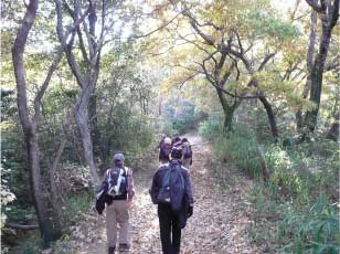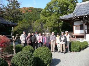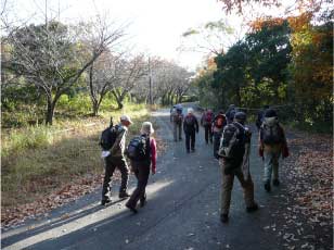 | 松愛会山歩き会主催で富田林の嶽山に登った。嶽山山頂にはかんぽの宿があり一般には車で行くほうが多い。六甲山でも同じなので我々は歩いて登ることにした。近鉄汐ノ宮駅から国道170号を渡り、東正面に見える嶽山を目指して歩き始める。石川に架かる千代田橋を渡り、少し上がると突き当たりになり左に折れる、すぐ右に登山口があり城山オレンジ園の案内がある。車道を十数分登ると願昭寺に着く。願昭寺、目白不動願昭寺は信者手造りのお寺だそうだ。本尊は樹齢800年の楠木の一刀彫だ。インド釈迦佛跡四大聖地お砂踏みがあったのでお参りさせていただいた。願昭寺左端のフェンスの横から登山道が続いている。ここからここから山道で山に来た感じのする道を登る。しばらくだが少し急坂で汗もしてきた。登りきるとオレンジ園に着く。今日は閉園で人気は全くない。 ここから当初計画では金胎寺山に登る予定をしていたがオレンジ園の看板に通行止めだの無断立入禁止などいっぱい書いてあるので今日は一旦あきらめ嶽山に行くことにした。峠になっているオレンジ園から約80m下り登り返すことになる。みかん畑を見ながら少し登り返すと龍泉寺に着く。龍泉寺は蘇我馬子の創建といわれ、仁王門は国の重要文化財だそうだ。境内の庭園は名勝に指定されている。しかし手入れは行き届いていなく名勝といわれる庭園は荒れ放題で庭の面影はなく、廃屋の庭のようになっているのが残念だ。入山料の300円は無駄遣いのようで、2003年に行った時より更に悪化し、富田林市の誇大観光案内と思われ、善処して欲しいと思う。 龍泉寺を出て急な自動車道を登るとやがてかんぽの宿前に着く。温泉に入る前に山頂を踏む。途中、竹炭窯があり立寄った人と間が開きハプニング発生。先発組は嶽山の山頂は龍泉寺城址の場所と決め付け到着後テニスコート横のベンチで昼食。後組みは地図上の嶽山山頂に行っていた。声はすれども居場所は分かれてしまった。地図上の山頂付近は開発が途中で中断しバンガローなど施設など未完成か利用不可能な状況でバブル期の忘れ物のようだ。それでも大阪平野が一望できるのはすばらしい。この景色はかんぽの宿の展望室からとほぼ一緒だ。嶽山は標高278mで、龍泉寺城址のあるピークの方が約10m高く、標高は高度計で289mを示していた。 かんぽの宿に入り富田林嶽山温泉に入る。露天風呂からの展望はすばらしく金剛葛城の連山が正面に展開しゆっくり寛げる。14時の送迎バスをパスしてゆっくりる予定だったが、食堂が14時で終わりということで急遽タクシーで滝谷不動駅へ、そして電車で大阪に戻った。京橋で反省会を行い盛り上がった後お開きとなった。 金胎寺山のルートは、もう少し調査し再度挑戦したいと思う。 |