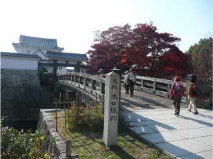 紅葉の下で紅葉弁当などという雰囲気だが今日は別の企画があるので後ろ髪引かれながら下山。旧東海道に出て水口宿からくり時計などを見て、旧東海道経て水口城跡に立寄った。水口城は先程登った水口岡山城の石垣などを使って築かれた城だ。三大将軍家光は、上洛に先立ち道中となる水口に専用の宿館を築かせた。これが水口城だ。現在は出丸の部分に矢倉が復元され、水口城資料館になっている。城跡を見て水口市街を後に水口大橋を渡り、みなくち子どもの森へ行った。