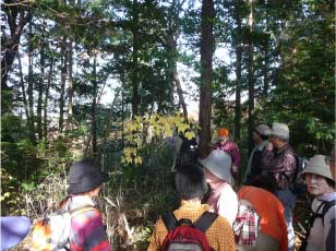 盆天山は、標高245.9mで三等三角点になっている。雑木林の真ん中で展望はない。東屋までの下りは、全員登った通りには降りれなかったようだ。大変藪漕ぎはおもしろかったが結果の分かっているところなので安心していく事ができるが、万一迷ったときを想定してみるととんでもない結果になりそうな気がした。