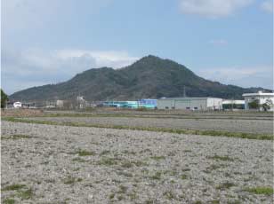 甲西富士(菩提寺山) 右端は近江富士(三上山) 石部より |
