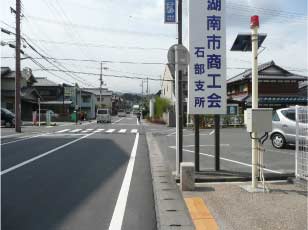 石部町道路元標のある商工会前 |