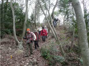 祠の前から南西方向に山頂が切り開けれていて最高の展望が楽しめる。日向ぼっこしながら昼食、ゆっくりくつろいだ。午後は三角点のある北峰へ、北峰からは雑木林で展望は得られない。