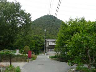 白浜の宮で仕度して白浜町の集落を、小富士山目指して一直線に進む。駅から東へ少し行ったところから北へまっすぐ住宅の間を行く。歩道のある広い道を右折し、次ぎの角で左折し、前方に見える小富士山を目指す。突き当たりの信号のある交差点(白浜北)を右にとる。左角に仁寿山学問所跡の標識があり、左折すると、麻生八幡神社の真正面に出る。