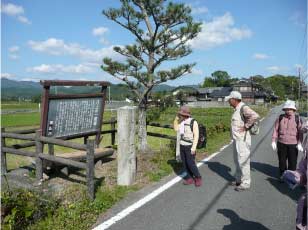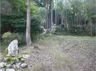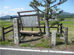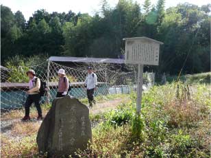 分岐から数分ではりつけ松跡に着く。落城の際、光秀の母、付人腰元等人質の処刑に使った松の跡と伝えれれているそうだ。