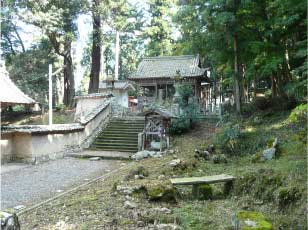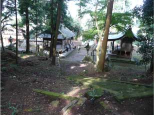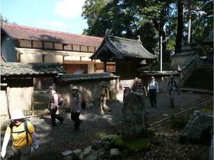 街道を少し先に進むと、古美術屋があり道を挟んで、八上城跡の案内説明板がある。間の道を進むと春日神社の境内になる。突き当たったところが春日神社の境内で、高城市松稲荷神社が左側にあり、その上段にお堂があり春日神社というのがよく分からなかった。右側の山道、八上城への大手道と思われる道を登り始める。 |