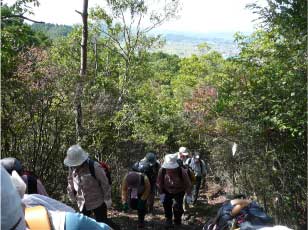 JR篠山口から登山口までバスの便がないので、途中の神姫バス篠山営業所までバスに乗った。ここから登山口の十兵衛茶屋まで歩いた。途中、高城山が時々きれいに見ることができた。また、八上小学校に二宮金次郎の像をみんな懐かしそうに眺めた。最近教育思想が変わり、二宮金次郎の像が校庭にある学校は少ないようだ。